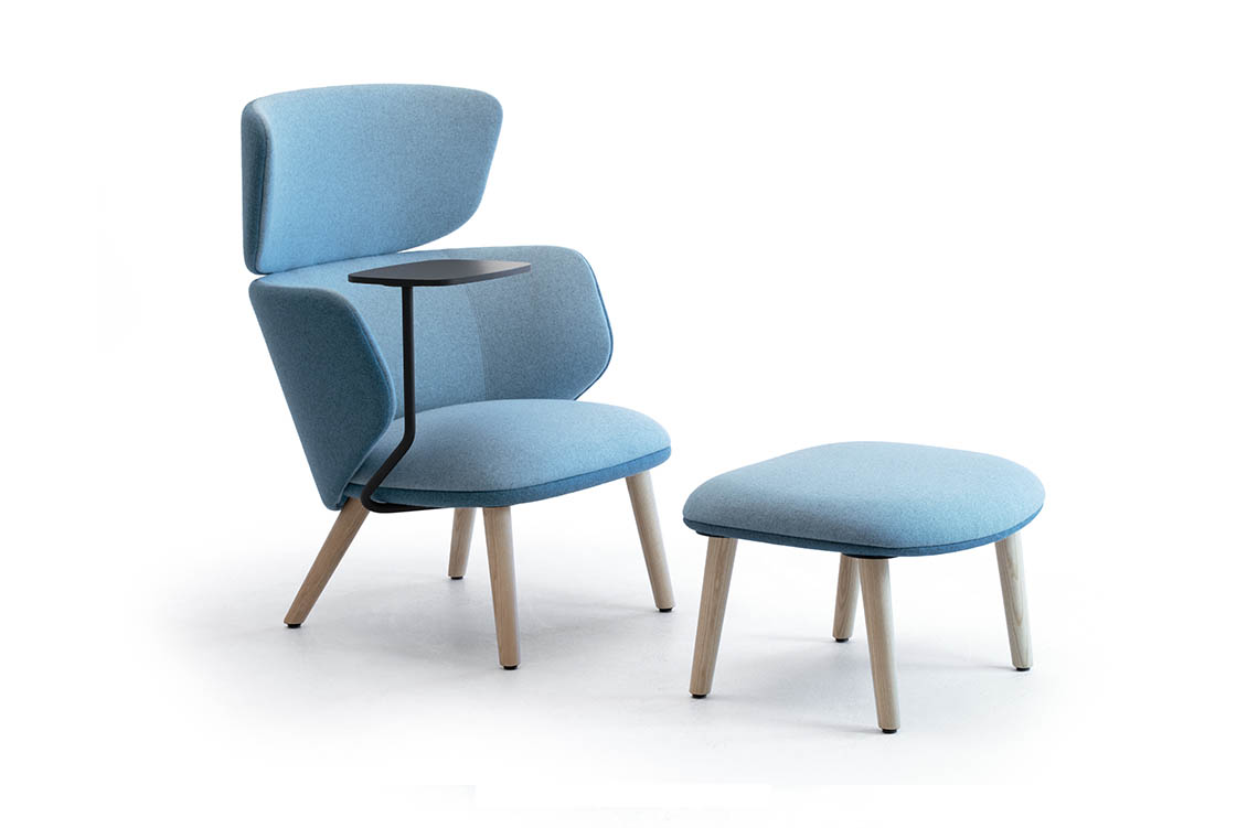 La poltrona con tavolo portaoggetti Alisè è realizzata con struttura multistrati di faggio + gambe in legno massello e una meticolosa attenzione ai dettagli. Il poggiapiedi opzionale assicura confort alle gambe durante l'attesa quando si legge un libro o si ascolta musica mentre si attende nella lobby di un hotel, nella sala attesa o prima di un incontro, visita, consulto.