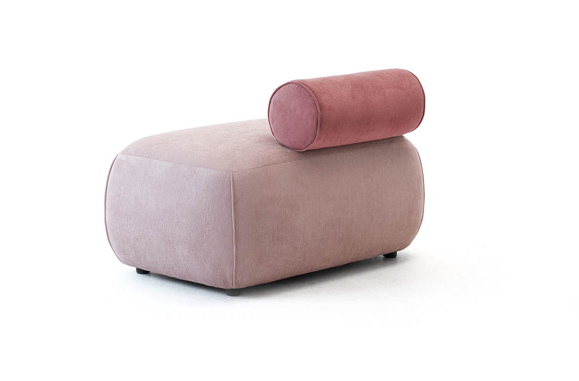- Configurabili sedute imbottite componibili caratterizzate da diverse volumetrie (da 75, 95, 125 e 110 cm, penisola da 105 cm + elemento angolare da 950 cm) e schienali cilindrici per composizioni d'arredo contract su misura.